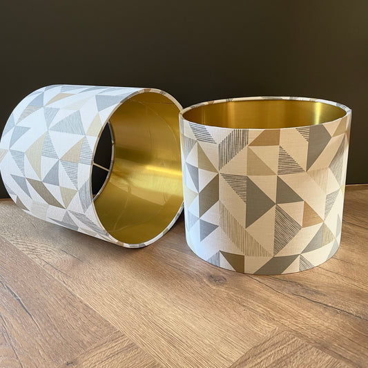 Grey Earthy Geometric Triangle Patterned Lampshade