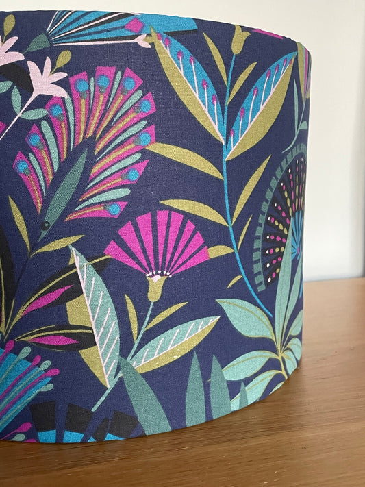 Navy Abstract Tropical Floral Lampshade