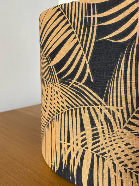 Light Brown-Orange and Black Tropical Leaf Lampshade